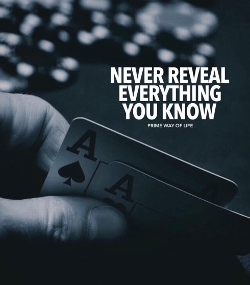 I am personally on the fence about this one. Sometimes in business you need to reveal your hand to show people what you’re working with. Other times you need to make sure that no one knows what you’re doing. And then there were just times where you know it doesn’t hurt to let someone know everything to do as in maybe mentoring someone or teaching someone says multiple scenarios apply this properly.Credit to @primewayoflife. Thank you & Love You Entrepreneur Motivation!