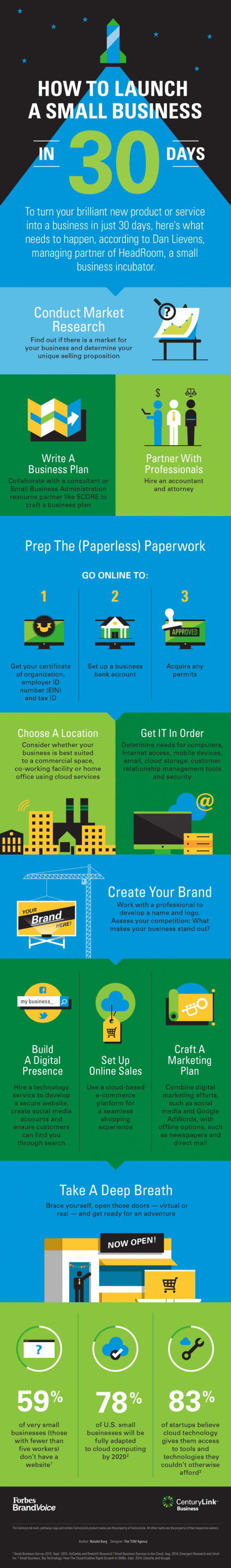 How to Launch a Small Business in 30 Days is an amazing infographic to help you get moving asap.